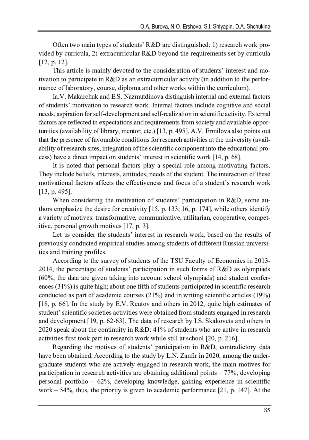 21. Zanfir L.N. Motivatsiia studentov k nauchno-issledovatel’skoi deiatel’nosti [Motivating students to engage in research activities]. Perspektivy nauki, 2020, no. 8 (131), pp. 146-148. EDN: CBYYHW