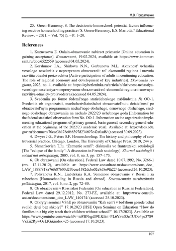 25. Green-Hennessy, S. The decision to homeschool: potential factors influencing reactive homeschooling practice / S. Green-Hennessy, E.S. Mariotti // Educational Review. - 2021. - Vol. 75(1). - P. 1-20.