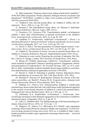 13. Дорофеева, З.Е. Трансформация практик вовлеченности родителей в жизнь детей / З.Е. Дорофеева, П.М. Козырева // Социологические исследования. - 2023. - № 8. - С. 86-100. EDN: VBDNOL