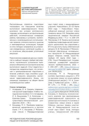 4. Симонова, М. А. Методическая система подготовки учащихся к ЕГЭ по русскому языку: из опыта работы [Электронный ресурс] / М. А. Симонова // Кубанская школа. - 2025. - № 1 (77). - С. 77-82. - URL: http://кубанская-школа.рф/wp-content/uploads/2021/11/КШ-2025-1-с-обложкой.pdf (дата обращения: 08.08.2025).