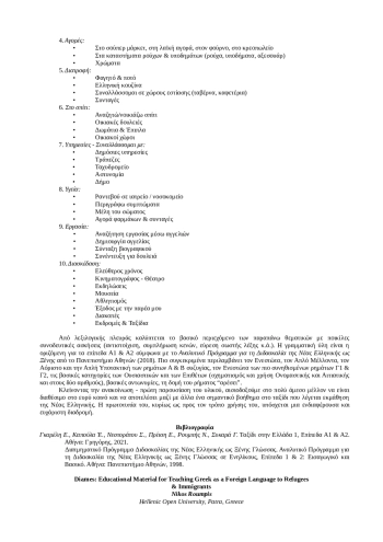 Это объявление касается презентации нового учебного материала, который может быть использован как основной и/или вспомогательный в сочетании с другим печатным пособием - “Метод изучения греческого языка как иностранного”, как преподавателями, так и студентами. Для последних этот материал может также служить методом самообучения. В этом условии, которое связано с характером материала, заключается прежде всего его специфика, поскольку оно организовано на электронной платформе и правильность ответов на большинство заданий контролируется автоматически и одновременно с моментом их выполнения. Этот материал охватывает основные и важные коммуникативные потребности, определенные в соответствии с общими требованиями к языкам, и является основной частью более широкой амбициозной программы, реализуемой Греческим открытым университетом (HOU), и касается психосоциальной поддержки и расширения прав и возможностей беженцев и мигрантов.