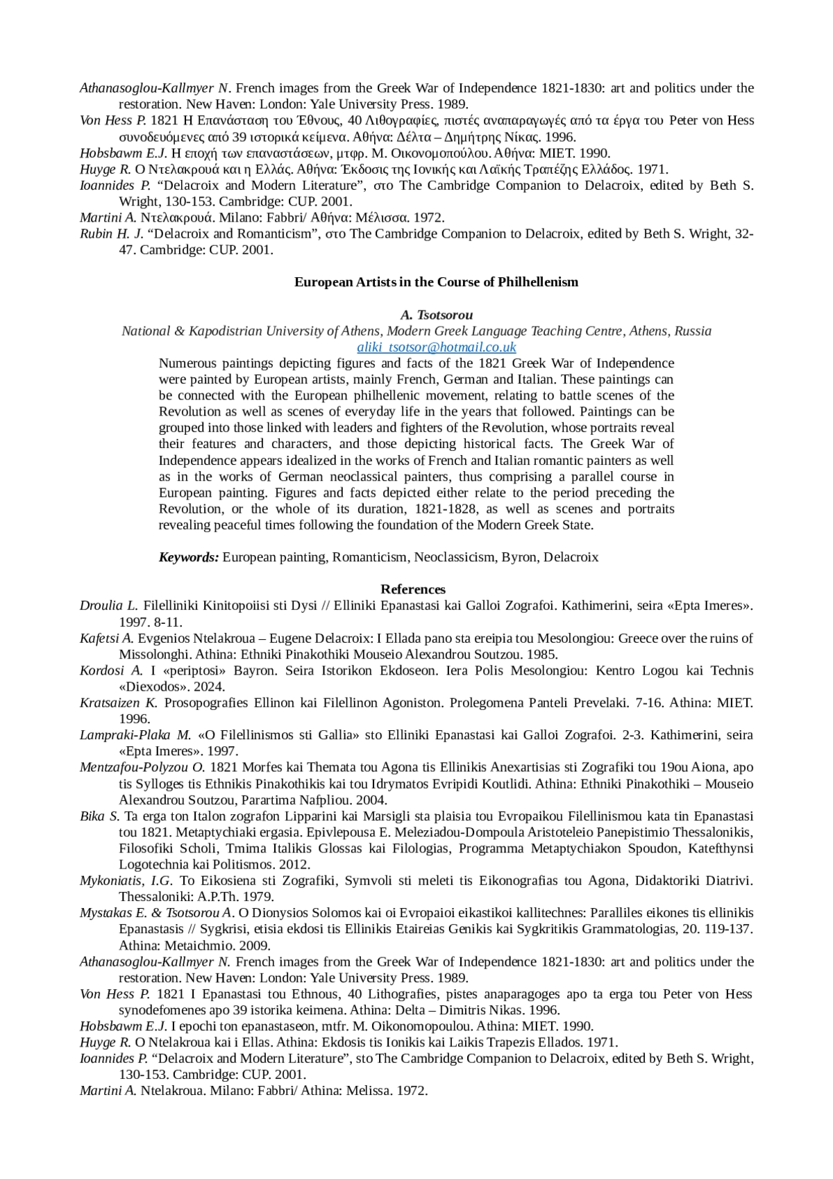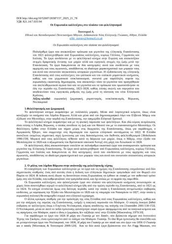 ΤΣΟΤΣΟΡΟΎ Α. ЕВРОПЕЙСКИЕ ХУДОЖНИКИ В КОНТЕКСТЕ ЭЛЛИНИЗМА // КАФЕДРА ВИЗАНТИЙСКОЙ И НОВОГРЕЧЕСКОЙ ФИЛОЛОГИИ. 2025. ТОМ 1, № 21