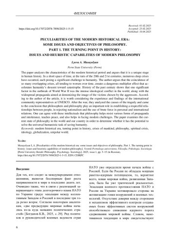 В статье анализируются особенности современной исторической эпохи и показывается, что она является уникальным этапом в истории человечества. В короткий отрезок времени, на стыке XX и XXI вв. произошло наложение множества глубоких кризисов, каждый из которых представляет опасный вызов человечеству. По мнению автора, совпадение по времени такого количества кризисов, имеющих тенденцию к обострению, создают мультипликативный эффект, ускоряющий сползание человечества к катастрофе. История прошлого столетия свидетельствует, что значимым фактором начала Второй мировой войны была максимальная идеологическая конфронтация в мире и оголтелая пропаганда по расчеловечиванию образа людей, избранных в качестве потенциальной жертвы агрессором. По мнению автора статьи, есть основание учесть опыт работы представителей мирового сообщества в ЮНЕСКО, которые после войны, анализируя причины происшедшей трагедии, пришли к выводу о важной роли философа и философии в формировании уважительных отношений между людьми, неприятия национализма и права грубой силы в межчеловеческих и международных отношениях. Можно согласиться с интеллектуалами, представленными в ЮНЕСКО, что философия помогает противостоять различным формам пропаганды, нетерпимости, учит миру, помогает противостоять современным вызовам. В статье исследуется состояние современной философии в мире и у нас в стране для выяснения вопроса - имеются ли у нее эвристические возможности для решения истинно вселенской гуманистической задачи - спасения человечества.
