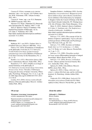 7. Соловьев В.С. Понятие о Боге. В защиту философии Спинозы // Вопросы философии и психологии. 1897. Год VIII, кн. 3(38). С. 383-414.