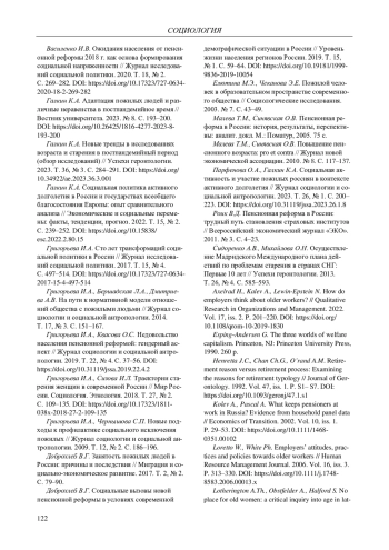 23. Henretta J.C., Chan Ch.G., O’rand A.M. Retirement reason versus retirement process: Examining the reasons for retirement typology // Journal of Gerontology. 1992. Vol. 47, iss. 1. P. S1- S7. DOI: 10.1093/geronj/47.1.s1 EDN: HJBKTN