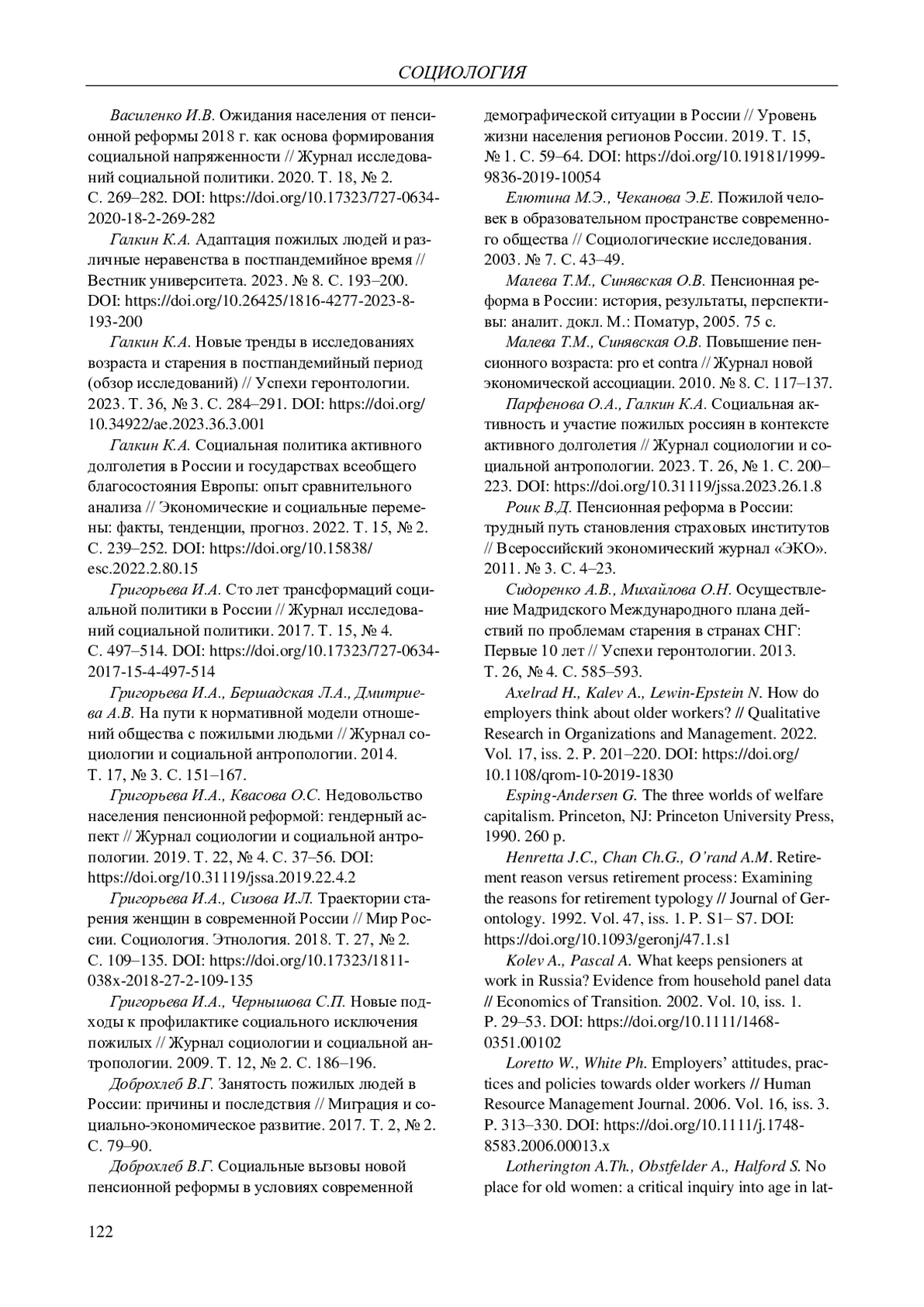 4. Василенко И.В. Ожидания населения от пенсионной реформы 2018 г. как основа формирования социальной напряженности // Журнал исследований социальной политики. 2020. Т. 18, № 2. С. 269-282. DOI: 10.17323/727-0634-2020-18-2-269-282 EDN: SSSFTA
