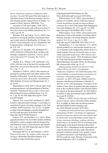 18. Nguyen T.D., Lam Ch.B., Bruno P. Is there a national teacher shortage? A systematic examination of reports of teacher shortages in the United States // EdWorkingPaper. 2022. No. 22-631. URL: https://edworkingpapers.com/sites/default/files/ai22-631.pdf (accessed: 18.09.2024). DOI: 10.26300/76eq-hj32