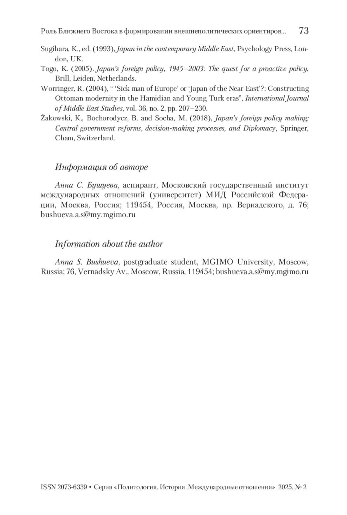 12. Özçelik 2008 - Özçelik S. The Japanese foreign policy of the Middle East between 1904- 1998: Resource, trade and aid diplomacy // Humanity & Social Sciences Journal. 2008. Vol. 3. No. 2. P. 129-142.