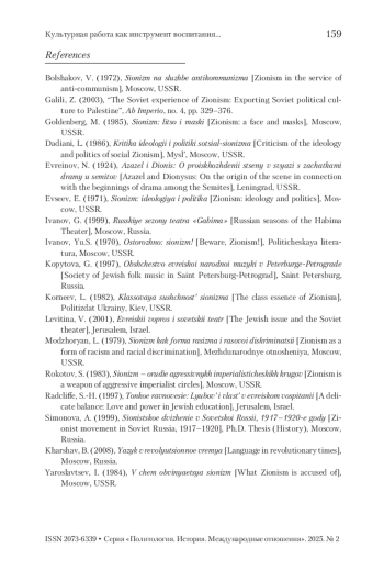 6. Евсеев 1971 - Евсеев Е. Сионизм: идеология и политика. М., 1971. 112 с. Иванов 1999 - Иванов Г. Русские сезоны театра «Габима». М., 1999. 317 с.