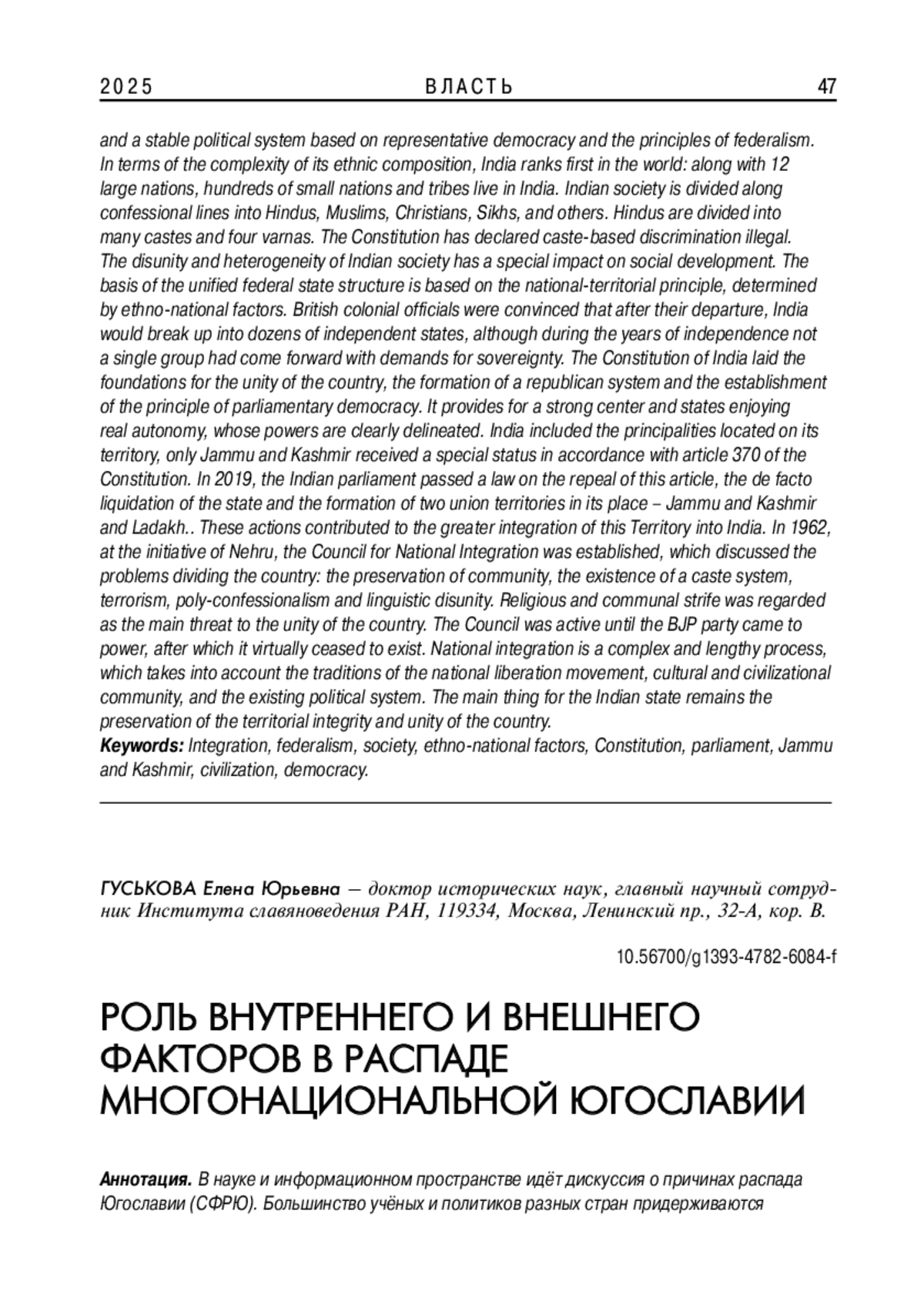 31. Юрлова Е.С. Роль каст в современной Индии // “Азия и Африка сегодня”. № 4, 2018. EDN: YVNENY