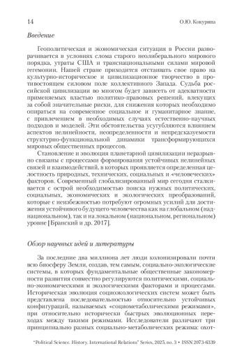 9. Кокурина 2022 - Кокурина О.Ю. Структура факторов государственности и суверенитет в свете системно-органического подхода // Вестник Московского университета. Серия 12. Политические науки. 2022. № 4. С. 7-20.