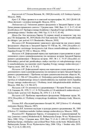 14. Неусыхин А.И. Дофеодальный период как переходная стадия развития от родоплеменного строя к раннефеодальному (на материале истории Западной Европы раннего средневековья) // Проблемы истории докапиталистических обществ. М., 1968. Кн. 1. С. 596-617.