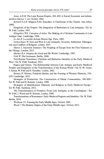52. Post-Roman Transitions: Christian and Barbarian Identities in the Early Medieval West / Ed. W. Pohl. Turnhout, 2013.