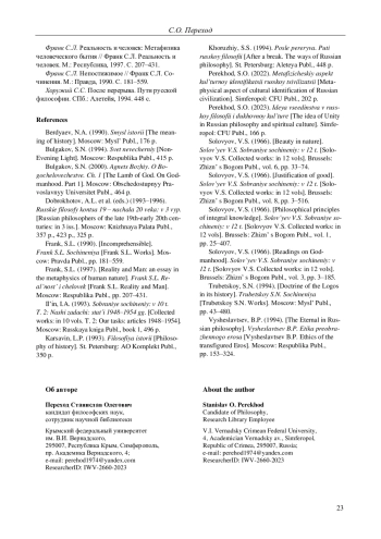8. Переход С.О. Метафизический аспект культурной идентификации русской цивилизации. Симферополь: Изд-во КФУ им. В.И. Вернадского, 2022. 202 с. EDN: VTWEJS