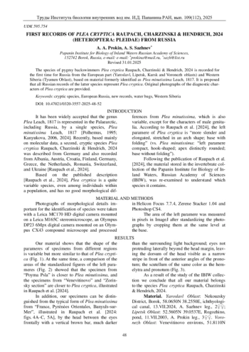 Вид плей Plea cryptica Raupach, Charzinski & Hendrich, 2024 впервые указан для фауны России из Европейской части (Ярославская, Липецкая, Курская и Воронежская области) и Западной Сибири (Тюменская область) на основании переизучения материала, ранее определенного как Plea minutissima Leach, 1817. Предположено, что все указания последнего вида с территории России относятся к Plea cryptica. Приводятся оригинальные фотографии диагностических признаков Plea cryptica.