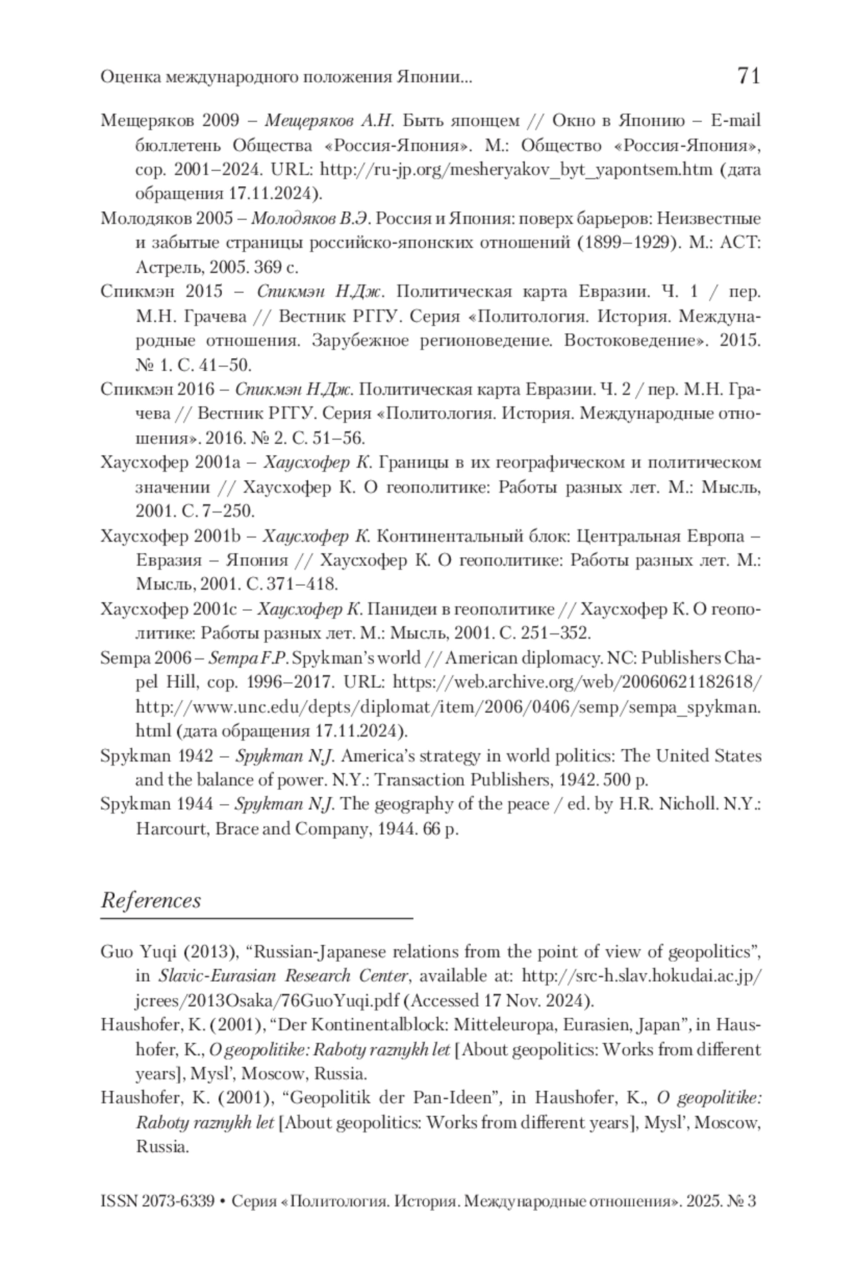 5. Спикмэн 2015 - Спикмэн Н.Дж. Политическая карта Евразии. Ч. 1 / пер. М.Н. Грачева // Вестник РГГУ. Серия «Политология. История. Международные отношения. Зарубежное регионоведение. Востоковедение». 2015. № 1. С. 41-50.