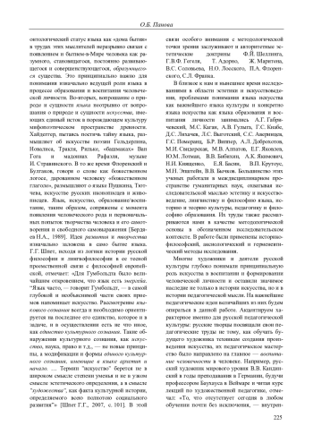 В статье обосновывается роль и значение языка искусства для воспитания человеческой личности. Автор опирается на достижения русской философии, русской педагогической мысли, русской эстетики и искусствоведения, отраженные в трудах В. С. Соловьева, Н. К. Рериха, Е. И. Рерих, Н. А. Бердяева, Н. О. Лосского, Д. С. Лихачева. Особое внимание уделяется художественно-эстетическому опыту, художественным открытиям и теоретическим работам В. В. Кандинского, К. Малевича, М. Шагала, Н. К. Рериха. Рассматриваются основные функции языка искусства - эстетическая, этическая и аксиологическая. Акцентируется необходимость их учета в преподавании гуманитарных дисциплин (философии, теории и истории культуры, теории и истории искусства, истории русской культуры и искусства) на русском языке с целью повышения культурного уровня современной молодежи, как русских, так и иностранных учащихся. Автор приходит к выводу, что более глубокое постижение русской культуры и русской истории и приобщение к основополагающим ценностям русского народа через личный эстетический опыт человека возможно именно на языке искусства. Более того, искусство способствует изменению мировоззрения человека и его личности в нравственном отношении, формированию его личных этических принципов и взращиванию в нем высоких идеалов Истины-Добра-Красоты в целом.
