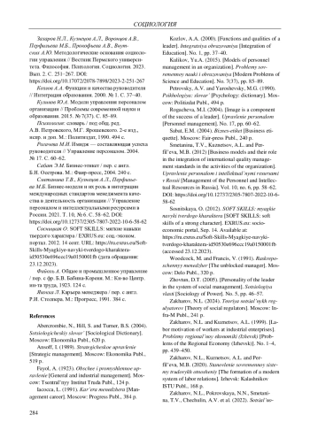 9. Захаров Н.Л., Кузнецов А.Л., Воронцов А.В., Перфильева М.Б., Прокофьева А.В., Внутских А.Ю. Методологические основания социологии управления // Вестник Пермского университета. Философия. Психология. Социология. 2023. Вып. 2. С. 251-267. DOI: 10.17072/2078-7898/2023-2-251-267 EDN: FOVIOU