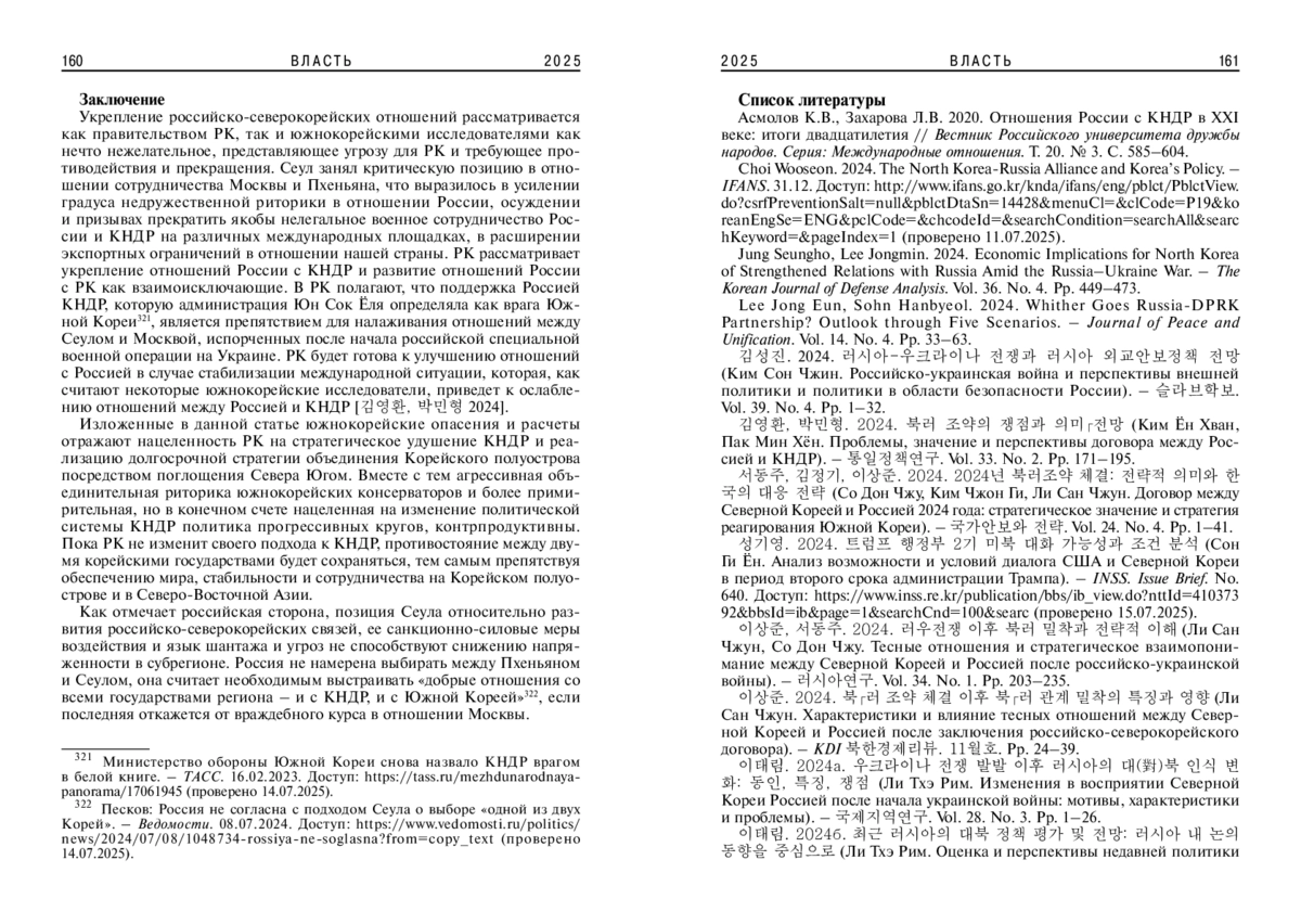 2. Choi Wooseon. 2024. The North Korea-Russia Alliance and Korea’s Policy. - IFANS. 31.12. Доступ: http://www.ifans.go.kr/knda/ifans/eng/pblct/PblctView.do?csrfPreventionSalt=null&pblctDtaSn=14428&menuCl=&clCode=P19&koreanEngSe=ENG&pclCode=&chcodeId=&searchCondition=searchAll&searchKeyword=&pageIndex=1 (проверено 11.07.2025).
