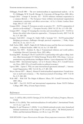 12. Graeger 2016 - Graeger N. European security as practice: EU - NATO communities of practice in the making?” // European Security. 2016. Vol. 25. No. 4. P. 478-501.