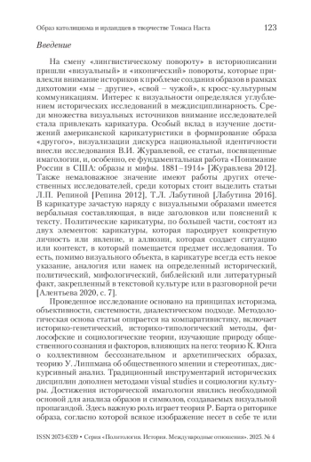 Статья посвящена анализу визуальных образов католицизма и ирландцев, созданных знаменитым американским художником Томасом Настом в 1860–1870-е гг. В подобном ракурсе проблема не рассматривалась ни в американской, ни в отечественной историографии. Томас Наст создал негативный образ римско-католической церкви, как консервативной, застывшей в средневековье, далекой от прогресса, стремящейся установить политическое господство в США. Отдельно рассматривается попытка католической церкви добиться государственного финансирования собственных школ. В статье анализируется расистский дискурс Т. Наста, выразившийся в создании расхожего стереотипа ирландцев, как дегенеративных, обезьяноподобных существ, принадлежащих к низшей по сравнению с англосаксонской, кельтской расе, наделенных набором отрицательных коннотаций. Томас Наст создал десятки антикатолических и антиирландских карикатур, способствовавших формированию американского общественного мнения в духе ксенофобии и разжигания межэтнической и межконфессиональной вражды. В то же время он отстаивал светский характер общественных школ и защищал принцип отделения церкви от государства. Методологическая основа статьи опирается на компаративистику, включает историко-генетический, историко-типологический методы, дискурсивный анализ текстов, достижения имагологии и visual studies. Источниками исследования послужили визуальные материалы, созданные Т. Настом для американского еженедельника “Harper’s Weekly” за 1860–1870-е гг. Статья вносит вклад в понимание феномена широкого распространения нативизма, ксенофобии, нетерпимости к ирландским католикам и католицизму в период Реконструкции.
