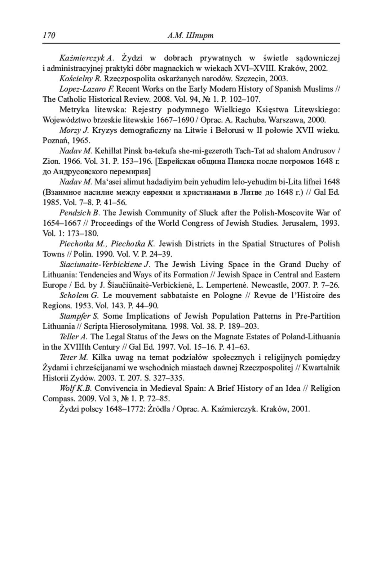 35. Nadav M. Kehillat Pinsk ba-tekufa she-mi-gezeroth Tach-Tat ad shalom Andrusov / Zion. 1966. Vol. 31. P. 153-196.