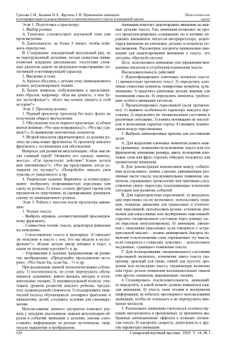 Авторы статьи знакомят читателей с технологией разработки учебной анимации и применения ее в интерпретации художественных и математических тексов в начальной школе. В работе предлагаются алгоритмы действий для развития визуализации, акцентирования внимания к тексту, его деталям, образной системе в процессе интерпретирующей деятельности с применением анимации. Приводятся примеры технологии развития наглядного представления абстрактных математических понятий и отношений с помощью анимации; создания анимации для представления понятия «число», «сложение однозначных чисел» и другое. В интерпретации художественного текста анимация помогает визуализировать образы и события, акцентированию внимания на важных деталях, созданию эмоционального настроя и развитию творческого воображения. В интерпретации математического текста - наглядно представить абстрактные математические понятия и отношения, визуализировать процесс решения задач, создать проблемные ситуации и развить интерес к математике. Применение анимации, как инструмента интерпретирующей деятельности, зависит от стиля, жанра, типа, содержания текста, целевой аудитории и планируемого учебного результата. В статье представлены пошаговые действия для самостоятельного проектирования и разработки анимационных роликов для работы над интерпретацией текста, формулируются практические рекомендации по интеграции анимации в учебный процесс, включая этапы работы с анимацией, примеры заданий и формы использования. Авторы отмечают, что интеграция анимации в образовательный процесс реализуется по принципу «от простого к сложному» и реализуется как с помощью просмотра готовых роликов, так и через создание авторских продуктов с применением цифровых инструментов (программ, сервисов, конструкторов) и, что не менее важно, с учетом основного принципа: анимационные материалы должны иллюстрировать текст, а не заменять его, и быть доступными для понимания обучающихся начальной школы.