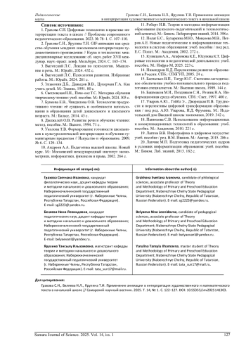 2. Грахова С.И., Ярулина Т.И. GIF-анимация как средство обучения младших школьников интерпретации художественного произведения // Наука и технологии: междисциплинарные исследования: сб. науч. работ XVII междунар. науч.-практ. конф. Мельбурн, 2024. С. 165-174.