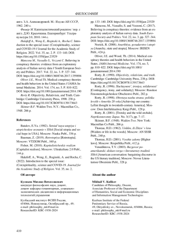 12. Mancosu М., Vassallo S., Vezzoni C. Believing in conspiracy theories: evidence from an exploratory analysis of Italian survey data // South European Society and Politics. 2017. Vol. 22, iss. 3. P. 327-344. DOI: 10.1080/13608746.2017.1359894