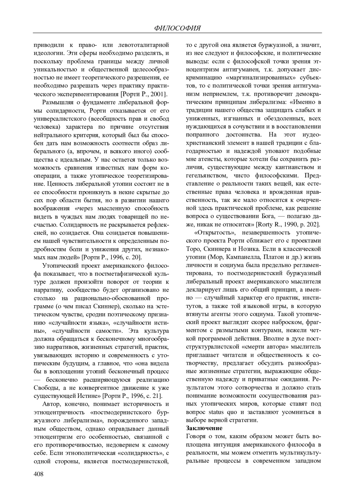 6. Рорти Р. Случайность, ирония, солидарность / пер. с англ. И.В. Хестановой, Р.З. Хестанова. М.: Русское феноменол. о-во, 1996. 282 с.