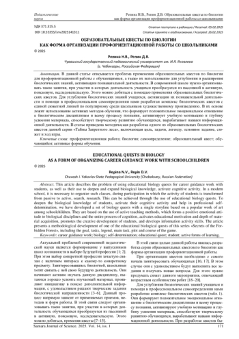 Статья: ОБРАЗОВАТЕЛЬНЫЕ КВЕСТЫ ПО БИОЛОГИИ КАК ФОРМА ОРГАНИЗАЦИИ ПРОФОРИЕНТАЦИОННОЙ РАБОТЫ СО ШКОЛЬНИКАМИ (2025)