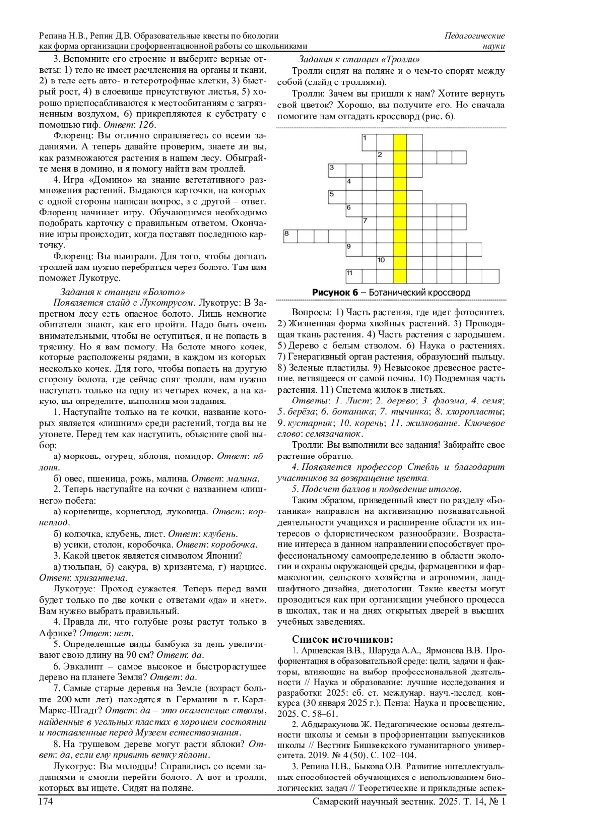 РЕПИНА Н. В., РЕПИН Д. В. ОБРАЗОВАТЕЛЬНЫЕ КВЕСТЫ ПО БИОЛОГИИ КАК ФОРМА ОРГАНИЗАЦИИ ПРОФОРИЕНТАЦИОННОЙ РАБОТЫ СО ШКОЛЬНИКАМИ // САМАРСКИЙ НАУЧНЫЙ ВЕСТНИК. 2025. ТОМ 14, № 1