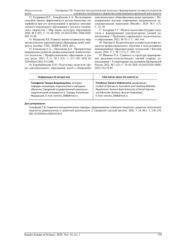 ТИМОФЕЕВА Т. В. ТЕОРЕТИКО-МЕТОДОЛОГИЧЕСКИЕ ПОДХОДЫ К ФОРМИРОВАНИЮ ГОТОВНОСТИ ПЕДАГОГОВ К РАЗВИТИЮ ТЕХНИЧЕСКОГО ТВОРЧЕСТВА ДОШКОЛЬНИКОВ В ПРОЕКТНОЙ ДЕЯТЕЛЬНОСТИ // САМАРСКИЙ НАУЧНЫЙ ВЕСТНИК. 2025. ТОМ 14, № 1