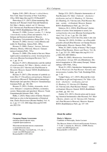 14. Сидорова М.А. Герменевтика действия Поля Рикёра: от интерпретатора к актору // Социологическое обозрение. 2024. Т. 23, № 3. С. 201-226. DOI: 10.17323/1728-192x-2024-3-201-226 EDN: AOYAGI