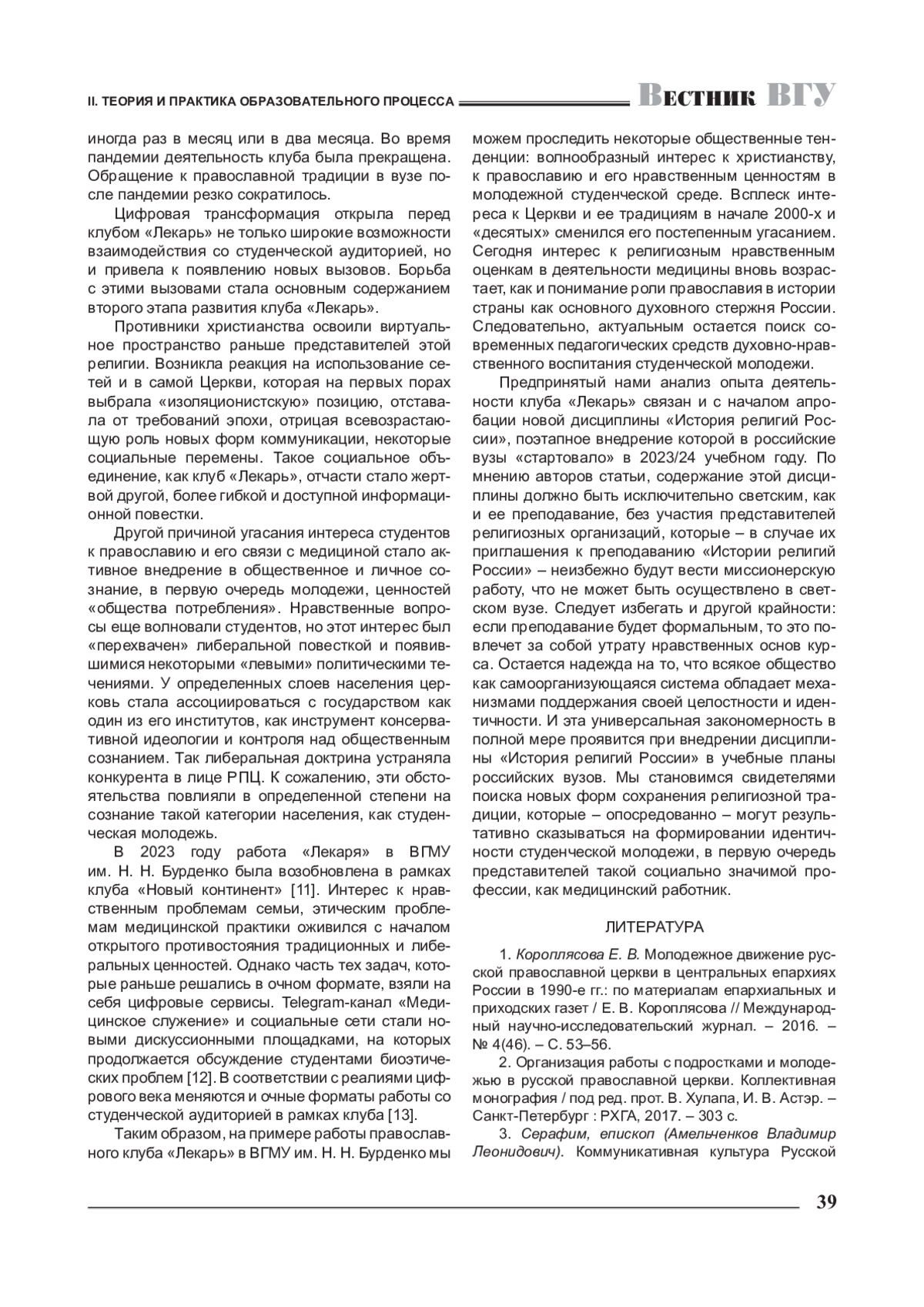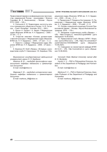 12. Православный клуб “Лекарь” ВГМУ // Воронеж: группа ВКонтакте. - URL: https://vk.com/prlekar?ysclid=lx8zmmz1r0445568306 (дата обращения 10.06.2024).