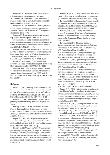 БУЛАНОВ С. М. ОНТОЛОГИЯ ИДЕНТИЧНОСТИ СУБЪЕКТА В ФИЛОСОФИИ ЭММАНУЭЛЯ ЛЕВИНАСА // ВЕСТНИК ПЕРМСКОГО УНИВЕРСИТЕТА. ФИЛОСОФИЯ. ПСИХОЛОГИЯ. СОЦИОЛОГИЯ. 2024. № 4