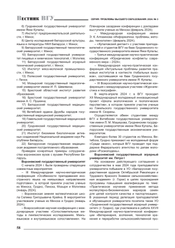 В статье рассматриваются вопросы образовательного и научного сотрудничества между вузами Центральной России и Беларуси. Представлен успешный опыт реализации совместных научных и образовательных проектов, предложены рекомендации для расширения взаимодействия.