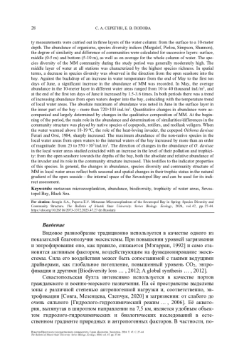 33. Seregin S.A., Popova E.V. Long-term dynamics of abundance of the copepod-invader, Oithona davisae, in the coastal waters of the Black Sea // Russ. J. Biol. Invas. 2016. Vol. 7, N 4. P. 374-382. DOI: 10.1134/S207511171604007X