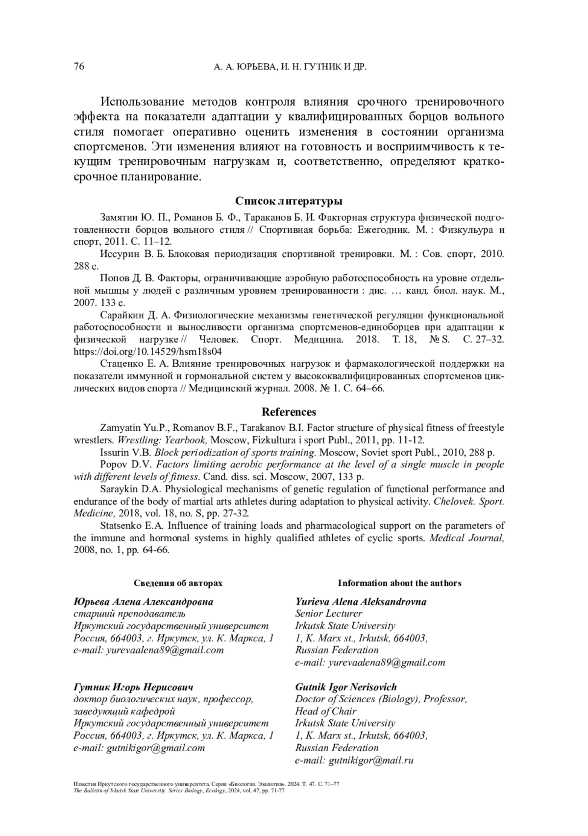 1. Замятин Ю. П., Романов Б. Ф., Тараканов Б. И. Факторная структура физической подготовленности борцов вольного стиля // Спортивная борьба: Ежегодник. М.: Физкульура и спорт, 2011. С. 11-12.