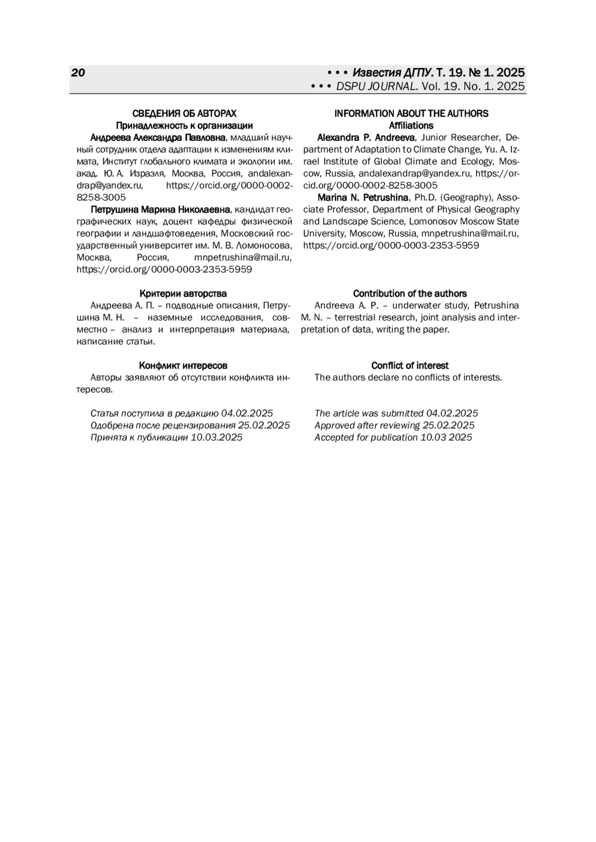 2. Макалова П. Г., Папунов В. Г., Петрушина М. Н. Ландшафтная структура береговой зоны полуострова Абрау // Ландшафтоведение: теория, методы, ландшафтно-экологическое обеспечение природопользования и устойчивого развития: материалы XII Международной ландшафтной конференции (Тюмень-Тобольск, 22-25 августа 2017 г.). Тюмень: Тюменский государственный университет, 2017. Т. 1. С. 211-216.