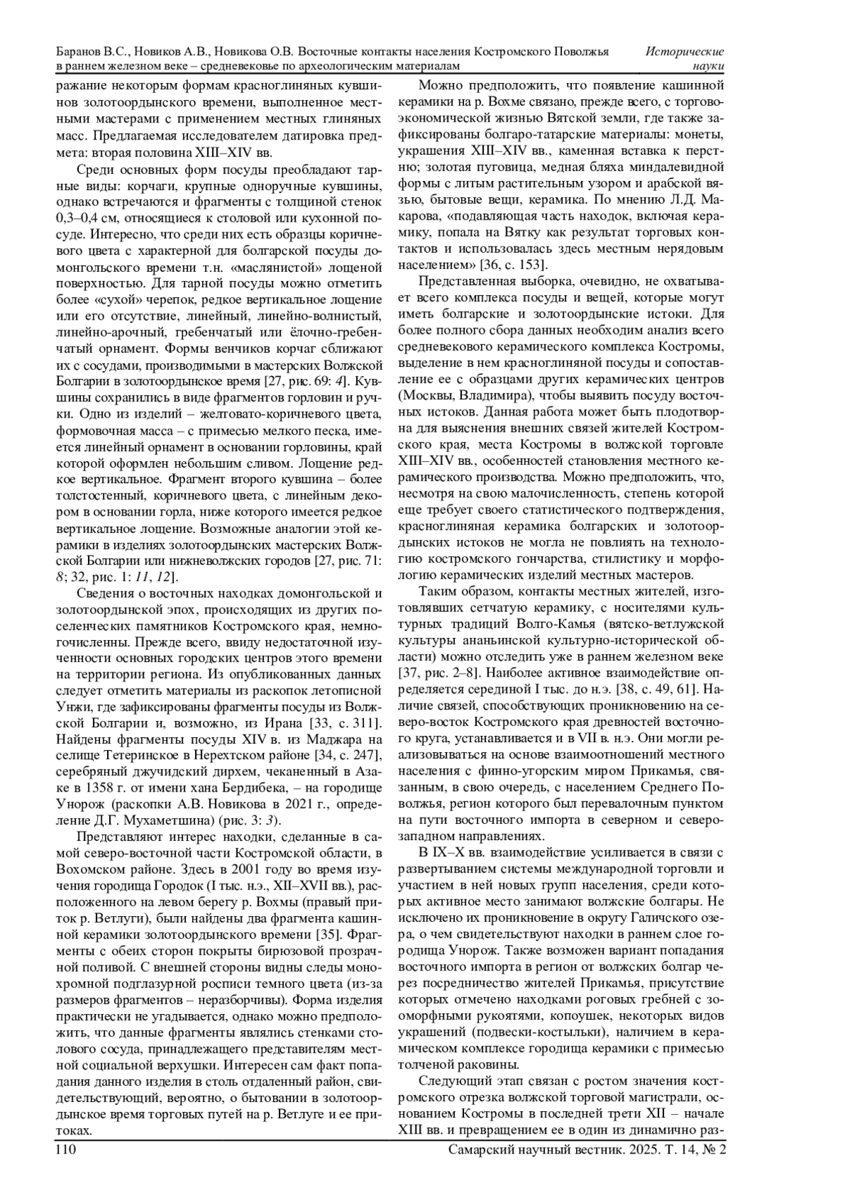31. Баранов В.С. Объекты жилой застройки одного из районов юго-восточной периферии города Болгара // Город Болгар. Жилища и жилая застройка / отв. ред. А.Г. Ситдиков. М.: Наука, 2016. С. 192-245.