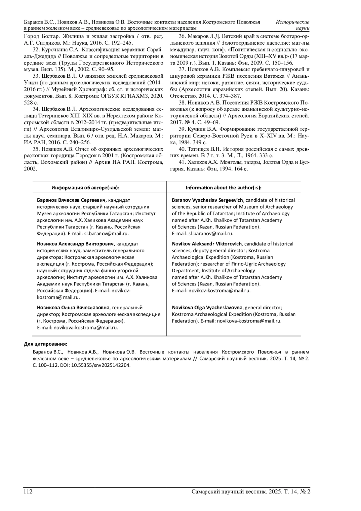 38. Новиков А.В. Поселения РЖВ Костромского Поволжья (к вопросу об ареале ананьинской культурно-исторической области) // Археология Евразийских степей. 2017. № 4. С. 49-69. EDN: VMJVTP