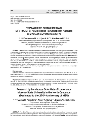 22. Гуня А. Н. Внутригодовая динамика высокогорных ландшафтов (на примере Приэльбрусья) // Вестник Московского университета. Серия 5: География. 1992. № 1. С. 52-59.