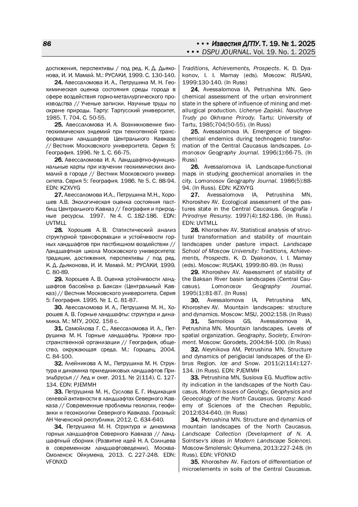 35. Хорошев А.В. Факторы дифференциации микроэлементов в почвах Центрального Кавказа // Известия Российской академии наук. Серия географическая. 2001. № 6. С. 77-82.