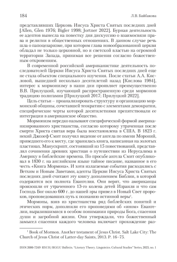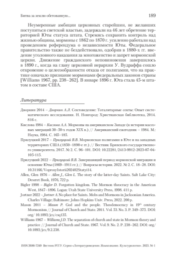3. Прилуцкий 2017 - Прилуцкий В.В. Мормонская полигамия в Юте и на западных территориях США (1850-1890-е гг.) // Вестник Брянского государственного университета. 2017. № 2. C. 96-101. https://doi.org/10.22281/2413-9912-2023-07-04-105-115.