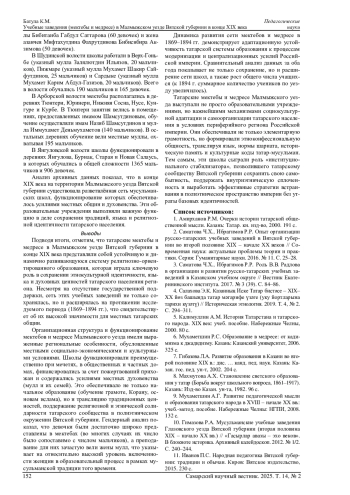 14. Мурзакаева К.М., Мухаметшин А.Г. К вопросу о становлении и развитии национальных начальных школ мектебе и медресе в Вятской губернии XIX - начала XX вв. // Проблемы современного педагогического образования. Сер.: Педагогика и психология. 2017. Вып. 57, ч. 11. С. 42-47.