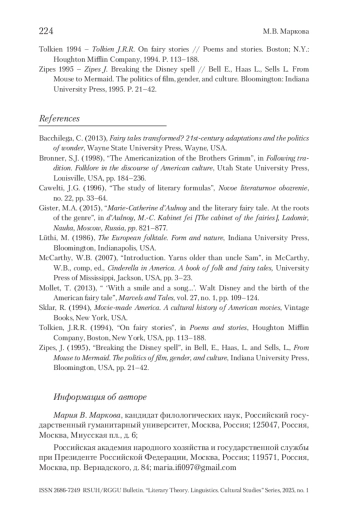 7. Mollet 2013 - Mollet T. “With a smile and a song…”. Walt Disney and the birth of the American fairy tale // Marvels and Tales. 2013. Vol. 27. No. 1. P. 109-124.