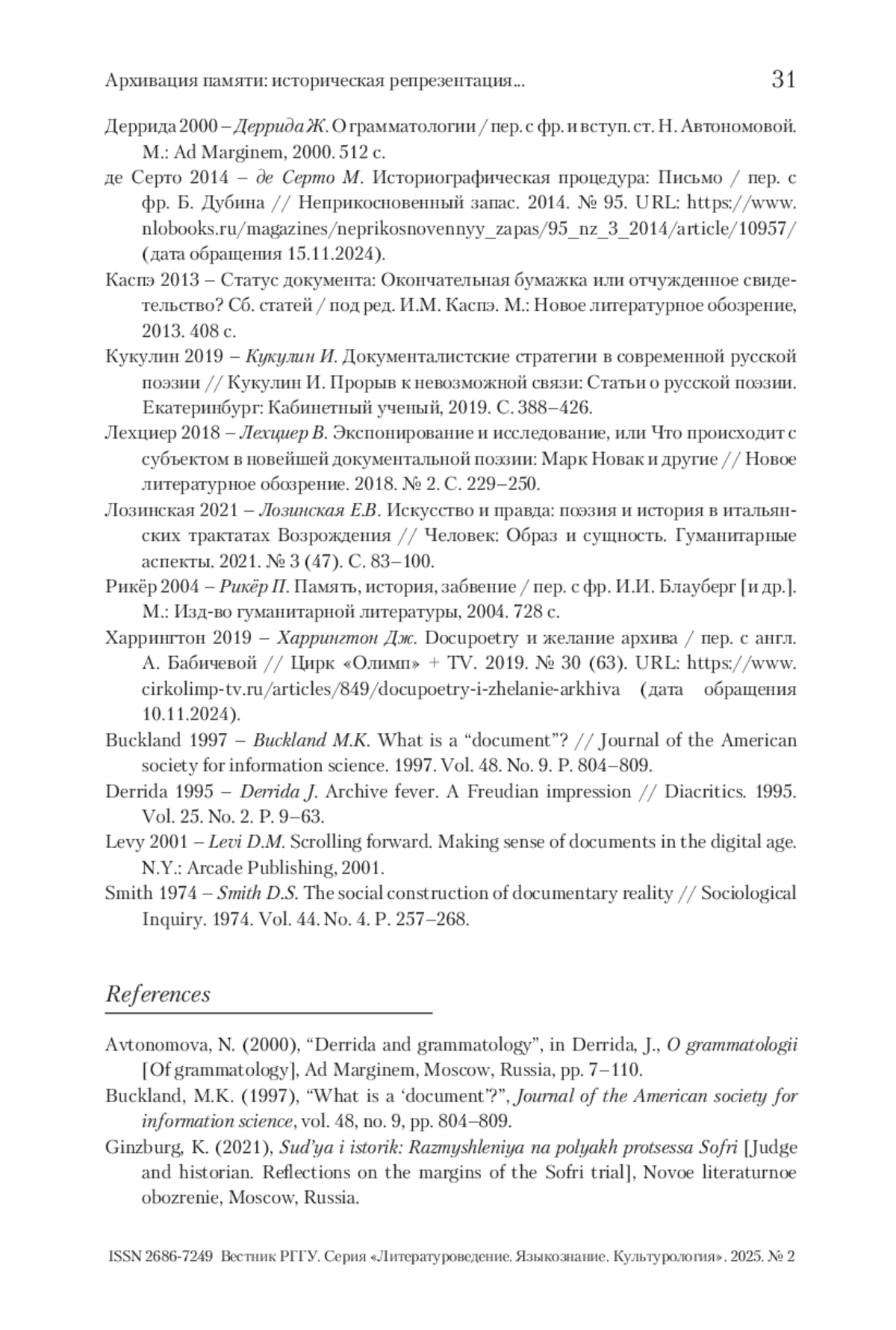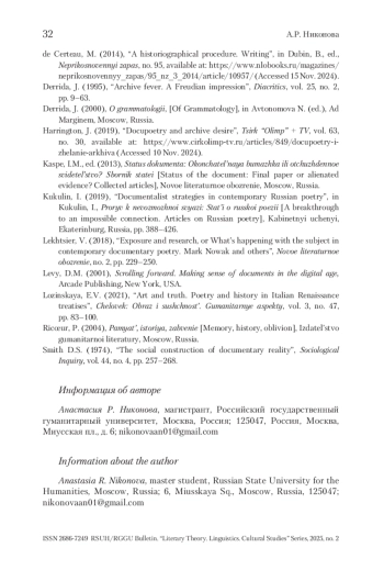 12. Derrida 1995 - Derrida J. Archive fever. A Freudian impression // Diacritics. 1995. Vol. 25. No. 2. P. 9-63.