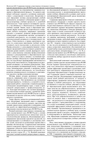 Статья: СОДЕРЖАНИЕ ПОНЯТИЯ «ОТВЕТСТВЕННОЕ ОТНОШЕНИЕ К УЧЕНИЮ КУРСАНТА ВЕДОМСТВЕННОГО ВУЗА ФСИН РОССИИ» КАК ПРЕДМЕТ ПЕДАГОГИЧЕСКОЙ РЕФЛЕКСИИ (2025)