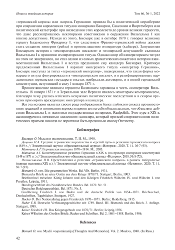 4. Матвеева А.Г. Конституционное развитие Германии в XIX в. (на примере имперских конституций 1849 и 1871 гг.) // Электронный научно-образовательный журнал “История”. 2018. № 8 (72). С. 23. EDN: YYSWST